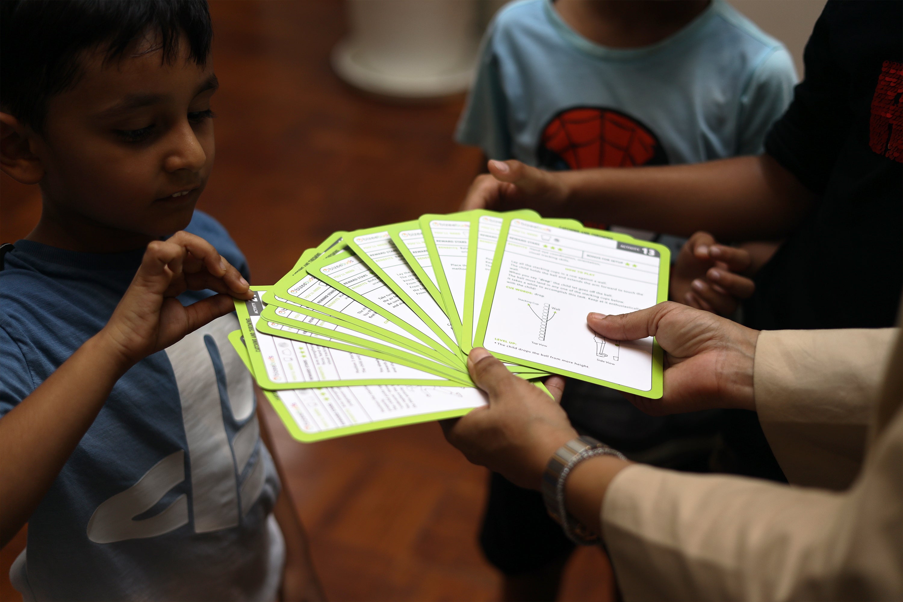 Videos, digital pictures and infographics quickly get buried and lost. Knowledge this valuable deserves a more permanent, accessible format. Hence, our activity cards are created with detailed illustrations and descriptive content to avoid any screen dependency. We want you to communicate and discuss as a team and have an interactive time even while setting up the game.